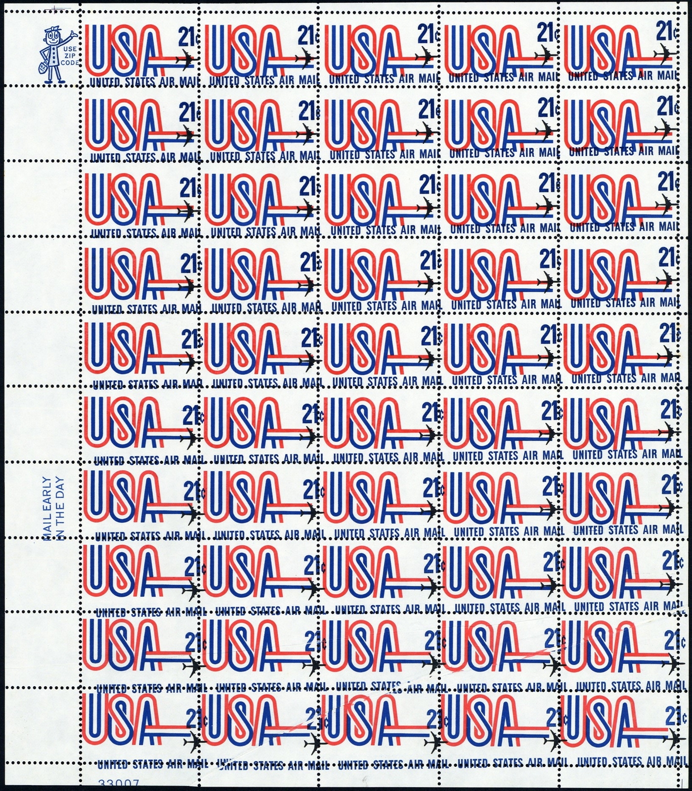 C81, MNH 21¢ Pre Print Paper Fold Makes For Misperf Sheet Error - Stuart Katz
