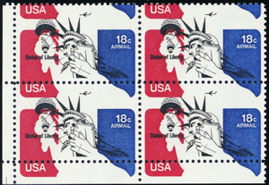 C87, 18¢ Statue of Liberty HUGE Color Shift ERROR Margin Block - Stuart Katz