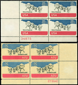 C88 26¢ Full Reverse Printing Under Gum Error Plate Block W/Normal * Stuart Katz