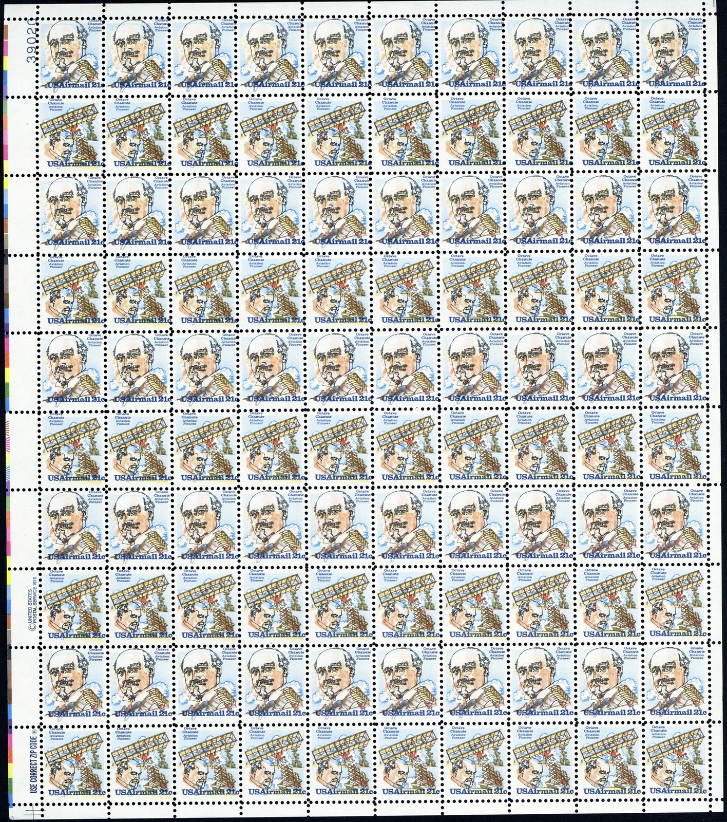 C94a, MNH 21¢ Color Shift Sheet of 100 Airmail Error Stamps - Stuart Katz