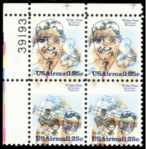 C96a, Mint NH 25¢ Color Shifted Left Freak Error Plate Block * Stuart Katz