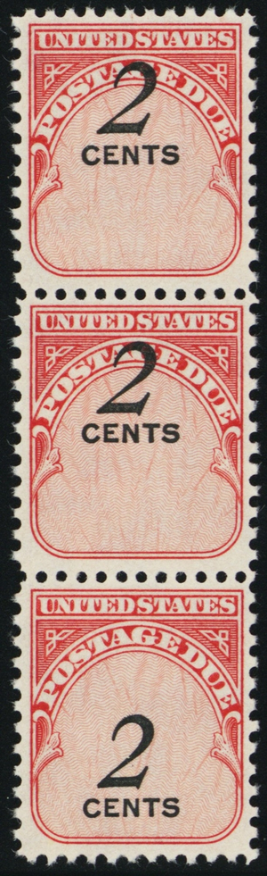 J90, Mint 2¢ With Wide Spacing Strip of Three CV $ 120.00 - Stuart Katz