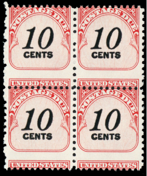 J97, Scarce Misperfed Error Block of 4 10¢ Postage Dues MNH - Stuart Katz
