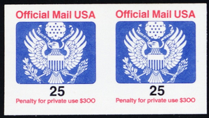 O141a, Mint NH VF 25¢ Official Imperforate Pair Error - Stuart Katz