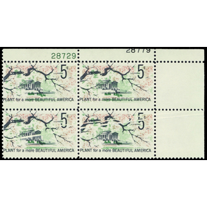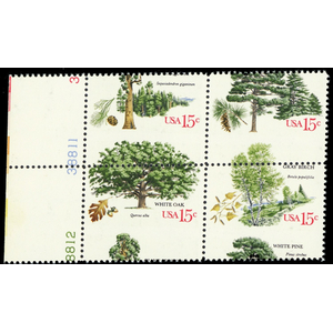 1767a, Mint NH 15¢ Misperfed Shift Error Block Trees - Stuart Katz