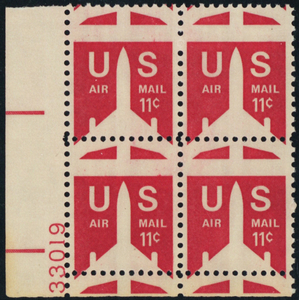 C78, MNH 11¢ Misperfed Error Plate Block of Four Airmail Stamps - Stuart Katz