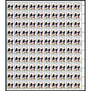 1596, MNH 13¢ Eagle Scarce Misperfed Error Sheet of 100 Stamps - Stuart Katz