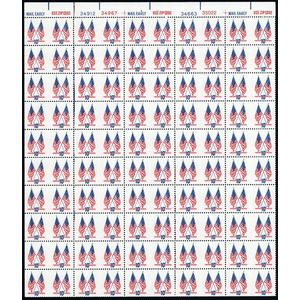 2111, Red Tape Splice on "D" Stamp Sheet of 100 Scarce! - Stuart Katz