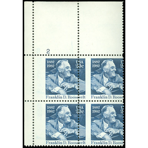 1950, Large Misperforated ERROR 20¢ Franklin Roosevelt Plate Block - Stuart Katz