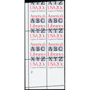 2114, Grossly Over Inked PL# Block of Twenty 22¢ ERROR Stamps -- Stuart Katz
