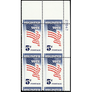 1249, Mint NH 5¢ Misperforated Error Plate Block Register to Vote - Stuart Katz