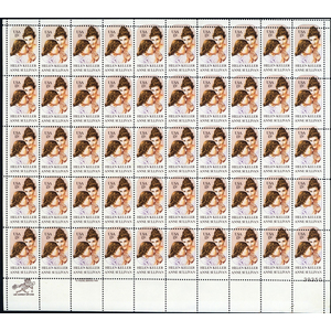 1824, MNH 15¢ Helen Keller Perf Shift Error Full Sheet of 50 Stamps Stuart Katz