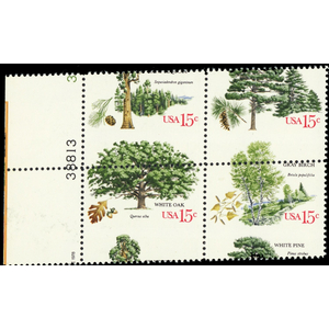 1767a, Mint NH 15¢ Misperfed Shift Error Block Trees -- Stuart Katz