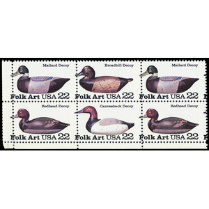 2141a, Mint NH 22¢ Misperfed Shift Error Block of Six Decoy Ducks - Stuart Katz