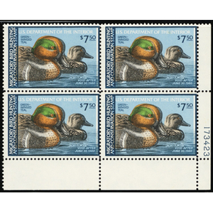 RW46, Mint NH $7.50 Duck - RARE Color Shift Error Plate Block * Stuart Katz