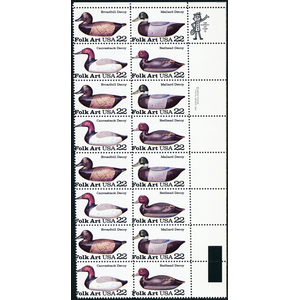 2141a, MNH 22¢ Decoys Misperfed Block of 16 Stamps Freaky Error - Stuart Katz