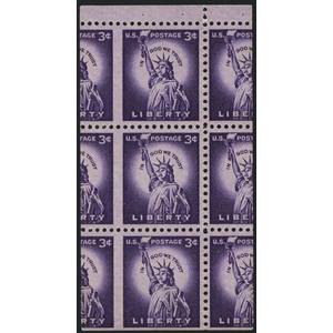 1035a, Mint LH 3¢ Massive Miscut Error Booklet Pane - Stuart Katz