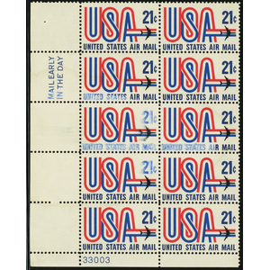 C81, MNH 21¢ Large Blue Ink Smear Freaky Error PL# Block/10 Stamps - Stuart Katz