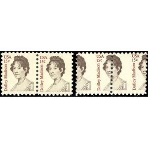 1822, 15¢ Dolly Madison MISPERFED ERROR PAIR WITH NORMAL