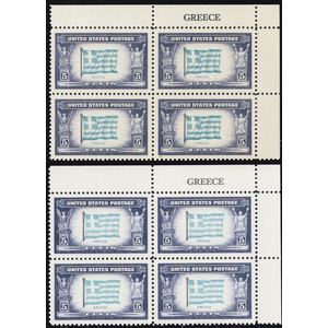 916a, Mint NH VF Reverse Printing of Flag Colors Name Block * Stuart Katz