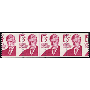 1305E, Mint NH 15¢ Misperfed Coil Line Strip of Four * Stuart Katz