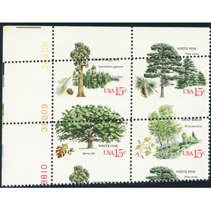 1764-67a, MNH 15¢ Trees Perf Shift Error PL# Block of Four Stamps - Stuart Katz