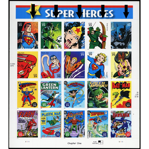 4084, VERY RARE Misperforated Super Heroes ERROR Sheet - Stuart Katz