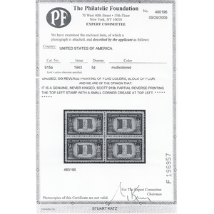 915b, 5¢ France Partial Reverse Printing of Flag Colors With PFC Stuart Katz