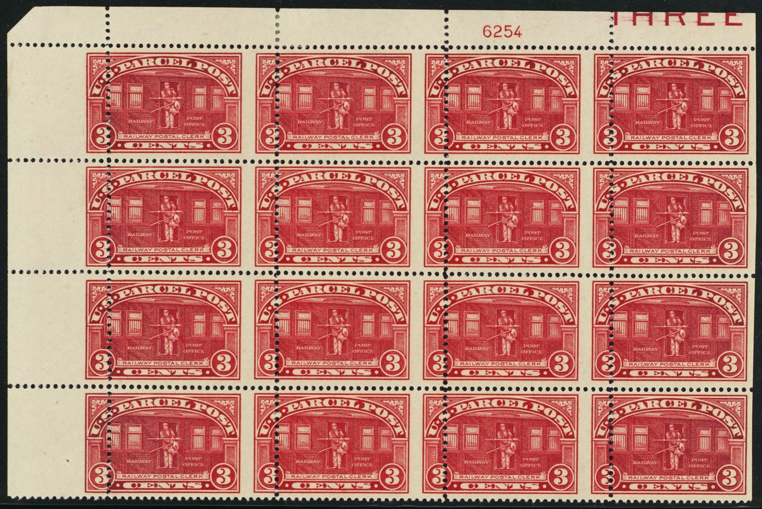 Q3, MNH 3¢ Parcel Post RARE Misperforation Error Block of 16 * Stuart Katz