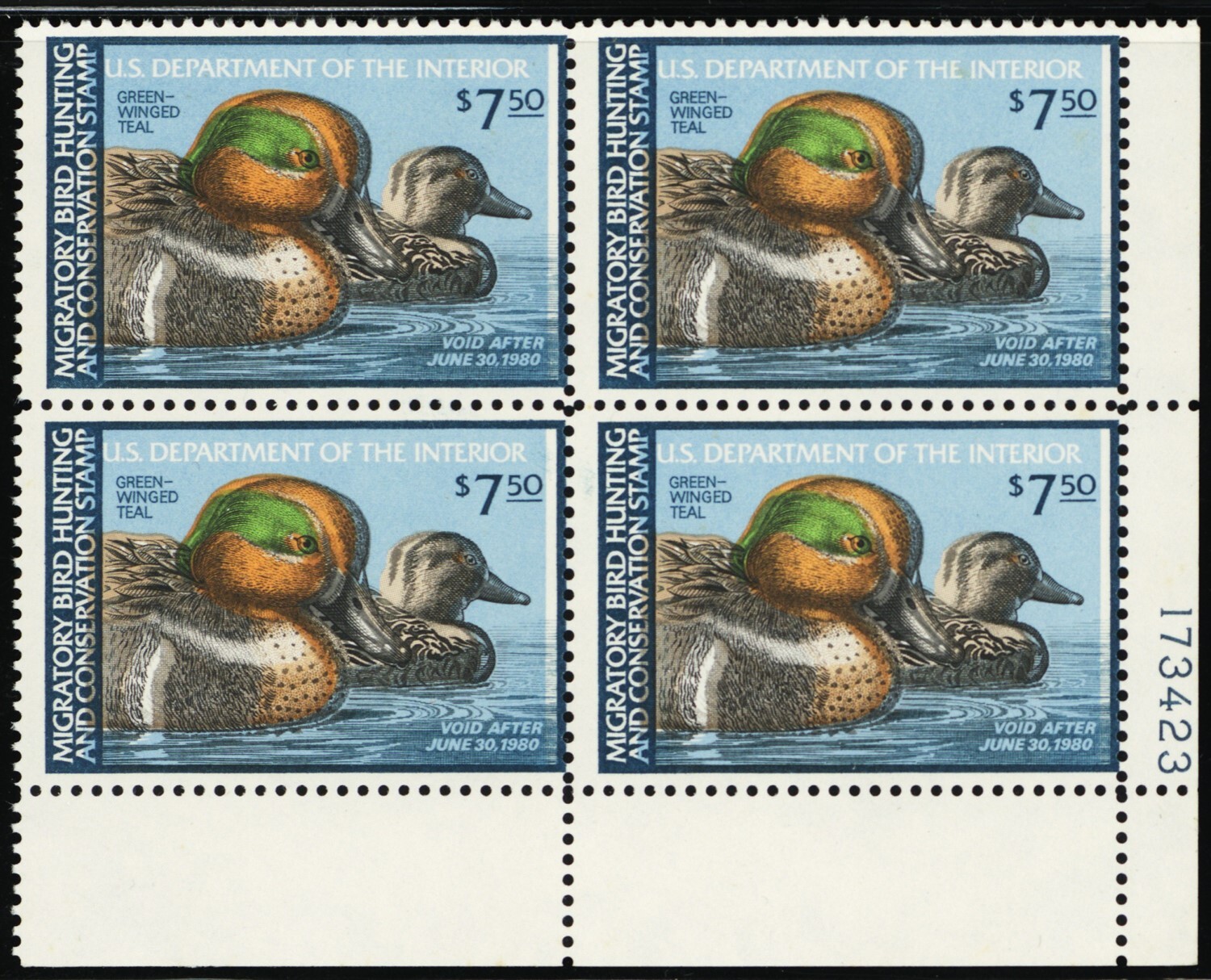 RW46, Mint NH $7.50 Duck - RARE Color Shift Error Plate Block * Stuart Katz
