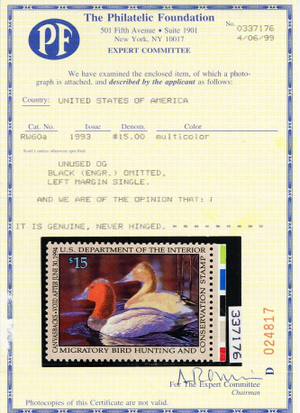 RW60a, Mint XF NH Black Color Omitted Error With Normal With PFC- Stuart Katz