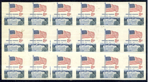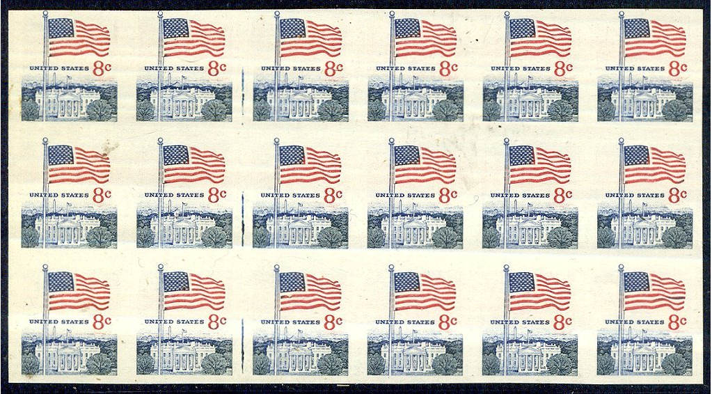 Scott #1338 var: 1970 8c Flag, IMPERF Centering & Condition: Mint. Fresh. Very Fine IMPERF Block of 18. Reverse (Gum Side): Original gum. Never Hinged. Faults / Imperfections: None The item pictured is the actual item you are purchasing, unless otherwise noted. I also offer an interest-free layaway plan. Ask me about it!" All items will be mailed a day or two after payment is received. ![]() ![]() ![]() --------------------------------------------------------------------------------