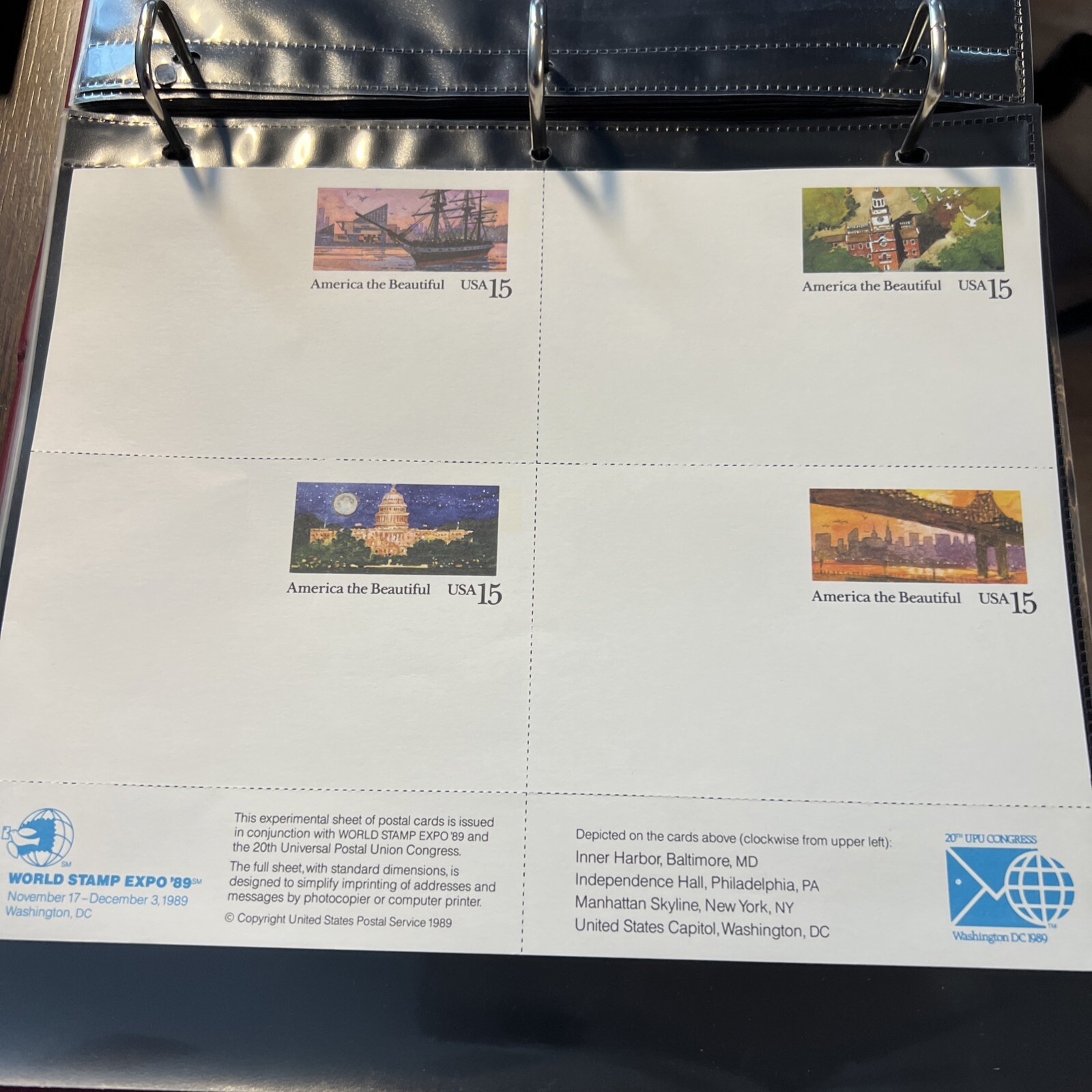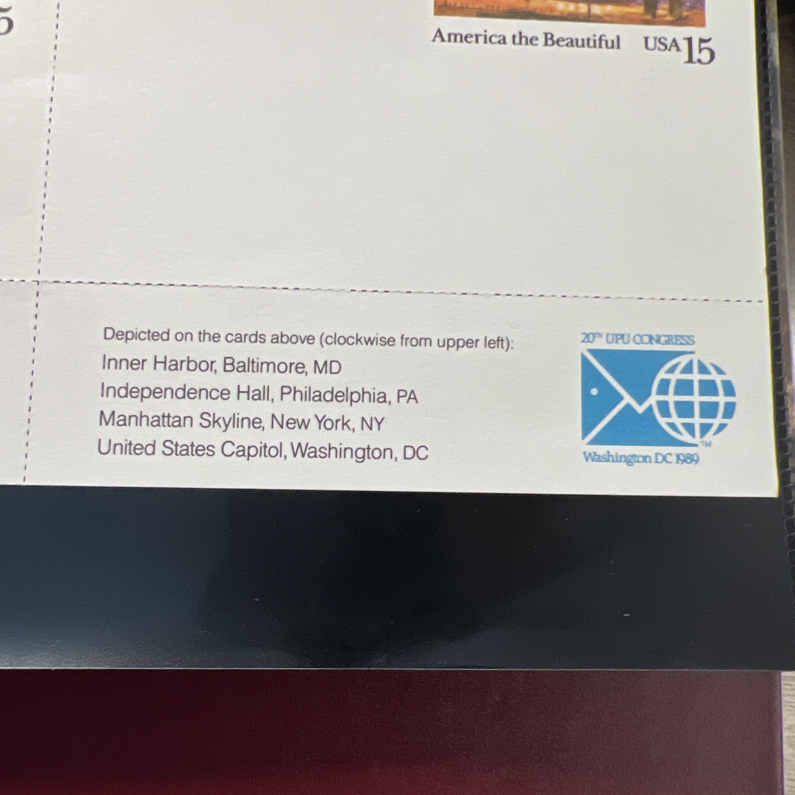 Scott#UX139 Congress/World Stamp Expo ’89 Sheet of 4 15¢ Cityscapes Post Cards. Shipped with USPS Ground Advantage.