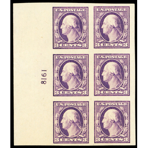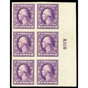484, Mint VF/XF LH 3¢ Plate Block of Six CV $95.00 ** Stuart Katz