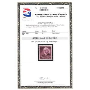 1062, Mint NH 3¢ - Superb GEM With Graded 98 PSE Certificate - Stuart Katz