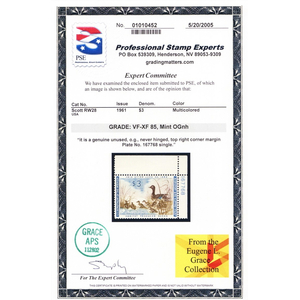 RW28, Mint NH VF/XF $3 Duck Stamp - PSE Graded 85 * Stuart Katz