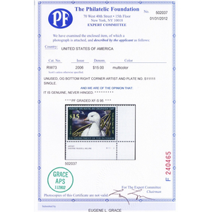 RW73, Mint NH XF/Superb $15 Duck Stamp - PSE Graded 95 Certificate * Stuart Katz
