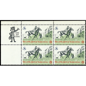 1478, Green Color Shift Freak Error Zip Block MNH 8¢ With Normal * Stuart Katz