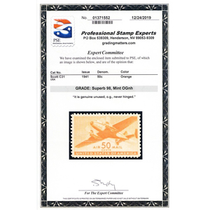 C31, Mint NH Superb 50¢ With Graded 98 PSE Certificate Stuart Katz