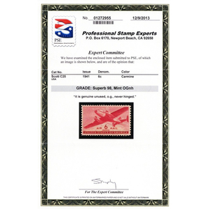 C25, Mint NH Superb 6¢ With Graded 98 PSE Certificate Stuart Katz