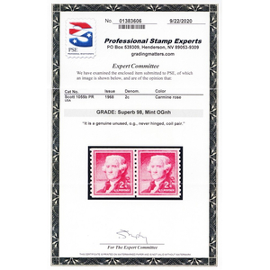 1055b, Mint 2¢ Superb NH Coil Pair With Graded 98 PSE Certificate Stuart Katz