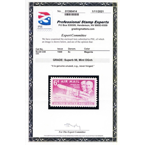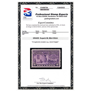 E15, Mint NH Superb 10¢ With Graded 98 PSE Certificate Stuart Katz