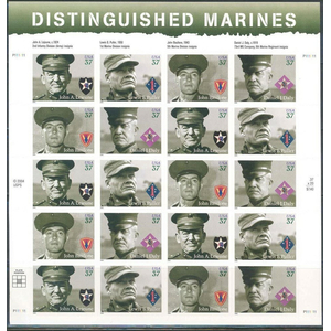 Distinguished Marines Sheet of Twenty 37 Cent Postage Stamps Scott 3961-64