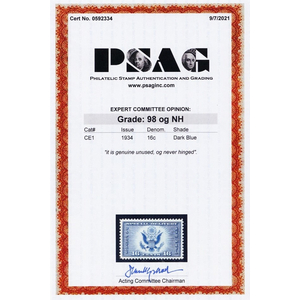 CE1, Mint NH Superb 16¢ With PSAG Graded 98 Certificate *-* Stuart Katz