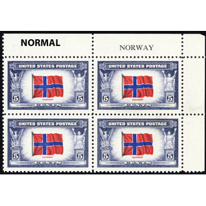 911b, Reverse Printing of Flag Colors VF NH Plate Block With Normal Stuart Katz