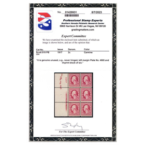 519, Mint NH 2¢ Plate Block of Six - EXTREMELY RARE - SCV $6500 * Stuart Katz
