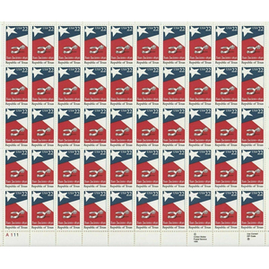 San Jacinto Republic of Texas Sheet of 50 - 22 Cent US Postage Stamps Scott 2204