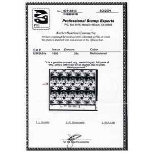 2634b, Mint NH 29¢ - Yellow Color Omitted Error With PSE Cert - Stuart Katz