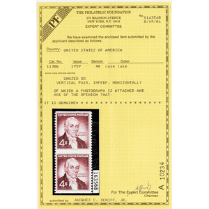 525, Mint NH 1¢ Misperforated Error Pair - Stuart Katz