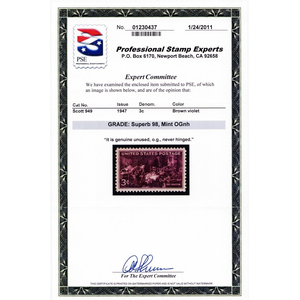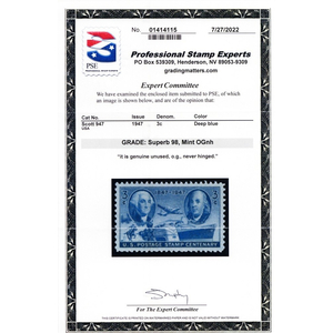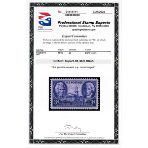 939, Mint NH 3¢ Superb With PSE Graded 98 Certificate * Stuart Katz
